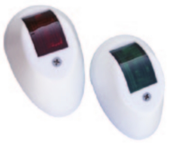 Fornecidas aos pares: vermelha-verde. Com corpo branco. 12V.